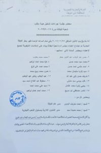 وانتهت الجلسة بفوز السيد / محمد محمد يعقوب برئاسة الشعبه بالتزكية ، وفوز السيد / محمد سيد محمد نائب أول بالتزكية ، وفوز السيده / عزة محمد احمد نائب ثاني بالتزكية ، وفوز احمد حلمي احمد سكرتير عام للشعبة بالتزكية ، و فوز كلاً من ” محمد احمد علي ، سيد زكريا ، عمرو محمد ، شريف حسن ، عبد الوهاب رياض ، فايد بيومي ” أعضاء لشعبة البقالة .