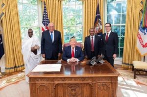 وقد أعرب وزير الخارجية عن تقدير الرئيس عبد الفتاح السيسي العميق لرعاية الرئيس دونالد ترامب لهذه المفاوضات واستقباله للوزراء الثلاثة والدور البناء والمحوري الذي يضطلع به الرئيس ترامب والولايات المتحدة، وبما يعكس عمق العلاقات الاستراتيجية التي تربط بين مصر والولايات المتحدة، الأمر الذي من شأنه أن يسهم في التوصل لاتفاق حول ملء وتشغيل سد النهضة وبما يعزز من تحقيق الاستقرار والتنمية في منطقة الشرق الأفريقي.