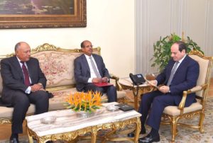 السيد محمود علي يوسف، وزير الشئون الخارجية والتعاون الدولي لجمهورية جيبوتي، وذلك بحضور السيد سامح شكري وزير الخارجية، إلى جانب سفير جيبوتي بالقاهرة.