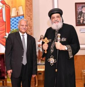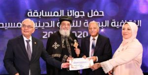 البابا تاوضروس بابا الكنيسه المصريه الأرثوذكسية يكرم الدكتور عبدالله حنا نائب رئيس المنظمه المصريه الدوليه لحقوق الانسان والتنميه بقطاع الدلتا ، الدكتور رضا حجازي نائب وزير التربية والتعليم والدكتوره رانده شاهين رئيس قطاع التعليم بالوزارة لدورهم البارز فى انجاح مسابقة الخطاب الدينى المسيحى المستنير من اجل الحفاظ الترابط والمحبه والانتماء والهويه والتراث الانسانى التنموى