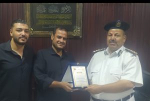 المتظمه المصريه الدوليه تكرم العميد عيد دياب مامور قسم شرطة النوباريه ، الرائد على شاكر رئيس المباحث