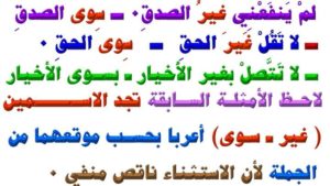 سؤال للطلاب : لمَ تأخذ غير وسوى حكم المستثنى، ولا نلحظ ذلك في إلا ؟