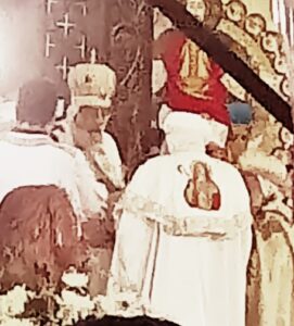 وبدأ القداس بموكب الدخول إذ حمل المطران والقساوسة وشعب الكنيسة سعف النخيل تيمنًا بدخول المسيح أورشليم في مثل هذا اليوم حين استقبله أهلها كملك منتصر فهتفوا له أوصنا أى خلصنا.