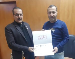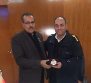 قيادات المنظمه المصريه الدوليه لحقوق الانسان والتنميه برئاسة الشريف المستشار اسماعيل الانصارى تكرم سيادة العميد وائل منصور مامور مركز طما