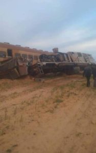 #بيان_إعلامي تعلن هيئة السكة الحديد أنه أثناء مسير القطار رقم 654 مطور القادم من الإسكندرية إلى مطروح عن خروج جرار القطار والعربات الاولي والثانية والثالثة عن القضبان بين محطتي سيدي عبد الرحمن وغزال خط القباري مطروح مما نتج عنه بعض الإصابات الخفيفة، ولايوجد وفيات، وجاري الدفع بأوناش السكة الحديد لرفع الجرار والعربات للاستعداد بالسكة.