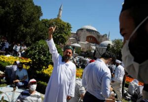 ولكن كانت محكمة تركية العليا قد أعلنت هذا الشهر إبطال قرار تحويل آيا صوفيا إلى متحف، والذي صدر في ثلاثينيات القرن الماضي. وفور صدور الحكم أعلن أردوغان إعادة المبنى، الذي كان في الأصل كنيسة تعود للعصر البيزنطي قبل 900 عام قبل أن يستولي عليه العثمانيون، إلى مسجد.