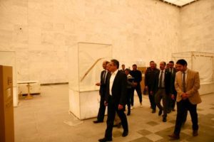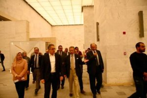 تفقد الدكتور خالد العناني وزير الآثار المتحف القومي للحضارة المصرية بالفسطاط، وذلك للوقوف على تطورات سير الاعمال بقاعة العرض المركزية وقاعة المومياوات الملكية و التي من المقرر افتتاحهما قريبا.
