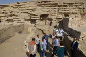 بدأت الزيارة بتفقد أعمال حفائر البعثة الاثرية المصرية العاملة بالمنطقة و التي عثرت علي مجموعة كبيرة من اللقى الأثرية المتنوعة والتي تشمل عدد كبير من القطط المحنطة بعضها بحجم كبير، و سيتم كشف النقاب و الاعلان عن تفاصيل الكشف الغني يوم السبت ٢٣ نوفمبر في مؤتمر صحفي بالمنطقة.