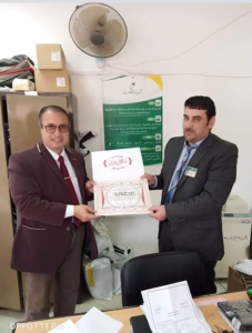 قام “مختار القاضي” نائب رئيس المنظمة بتسليم الأستاذ أحمد عبد الحليم أحمد أبو العزم شهادة التقدير الخاصة بالمتميزين ، متمنيا له المزيد من التقدم والإزدهار ، وذلك بمقر عمله ، اليوم الثلاثاء ، بمكتب بريد جامعة العريش .