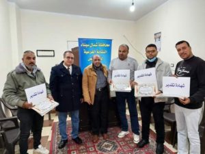 من ناحيةٍ أخرى ، قدم الدكتور القاضي شهادات التقدير البلاتينية لنخبة متميزة من طاقم التمريض ، وذلك بمقر نقابة التمريض بالعريش وهم : الأستاذ حمدان سالم محمد الشلبي نقيب تمريض شمال سيناء ، والأستاذة حنان موسى حسين ، والأستاذ أيمن كامل محمد ، والأستاذ خالد عايش إبراهيم ، والأستاذ شريف أحمد عبد الجابر ، والأستاذ هاني محمد علي .