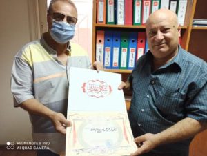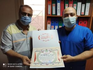تفضل الدكتور مختار القاضي ، نائب رئيس المنظمة ، بتسليم السادة الأطباء المكرمين شهادات التقدير ؛ وذلك لدورهم البارز في الاهتمام بالمرضى ورعايتهم والتفاني في العمل ، مما جعلهم يستحقون كل التقدير والاحترام .