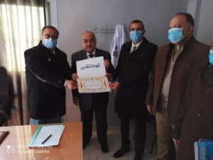 تفضل الدكتور مختار القاضي ، مشكورًا ، بتقديم شهادات التقدير البلاتينية للسادة المُكرَّمين بمقر مستشفى الشيخ زويِّد ؛ اعترافا بدورهم في النهوض بمنظومة الصحة بمركز الشيخ زويِّد فى ظل ظروف صعبة تخوضها الدولة من حرب ضروس على الإرهاب ومجابهة فيروس كورونا المستجد “كوفيد 19” .