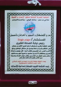 بدرع الاستحقاق والتميز الي سيادة المستشار مهند امين فوده رئيس نيابه السيدة زينب