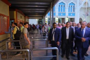 بدأت الجولة بتفقد الساحة الخارجية للمحطة ثم الصالة الرئيسية وأرصفة الوجهين البحري والقبلي وشبابيك التذاكر حيث إطمئن على إنتظام جداول التشغيل ثم تفقد أحد القطارات بالمحطة والتقى بسائق وكمسارية القطار وأكد على ضرورة الحرص على التعامل الجيد وعدم التجاوز تجاه أي مواطن في مختلف المواقف وأن يكون الأساس في التعامل هو القانون.
