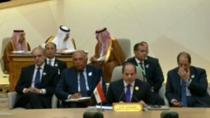 وأشار امبابى أن السيد الرئيس القائد أطلق بالقمة المحاور الخمسة للرؤية المصرية فى مختلف المجالات السياسة والاقتصادية والاجتماعية والتى شملت رؤية مصر لحل القضية الفلسطينية والديمقراطية والمساواة واحترام حقوق الإنسان بالإضافة إلى محورى الأمن القومى العربى ومواجهة الإرهاب إقليميا ودوليا