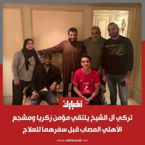 ركي آل الشيخ يلتقي مؤمن زكريا ومشجع الأهلي المصاب قبل سفرهما للعلاج