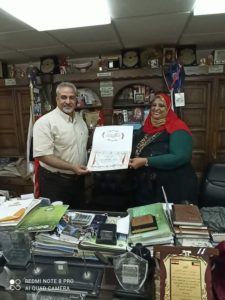 من جهته ، قام الشريف المستشار / إسماعيل الأنصاري ، رئيس المنظمة المصرية الدولية لحقوق الإنسان والتنمية ، بتسليم مروة عبد الحفيظ شهادة التميُّز بمقر المنظمة ، اليوم ، في وجود نخبة متميزة من قيادات المنظمة والإعلاميين .