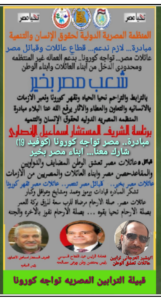 عائلات مصر.. تواجه.. وباء القرن.. فيروس كورونا.. بدعم العماله غير المنتظمه الاكثر تضررا من تفشى وباء كورونا…العماله غير المنتظمه الان بمصر بلا عمل بلا اموال بلا زاد … بالتعاون والترابط والتكامل والتكافل والحب والاخلاص والموده وابتغاء وجه الله سبحانه وتعالى تعبر مصر بعائلاتها من حرب وحصار كورونا منتصره…. معا عائلات مصر تواجه كورونا… معا نعبر الازمه…العلاقات العامه والاعلام والتواصل والمتابعه ا.وائل ابوالحسن الجبلاوى