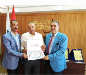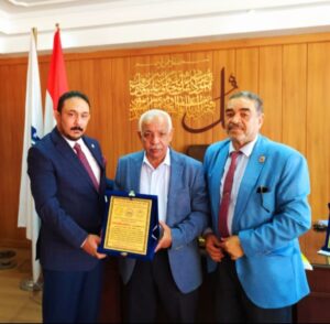 قيادات المنظمه تكرم رمز وطنى متميز من رموز العمل النقابى ا.عبدالمنعم الجمل رئيس الاتحاد العام لنقابات عمال مصر