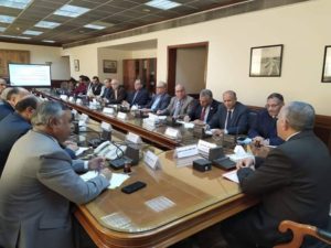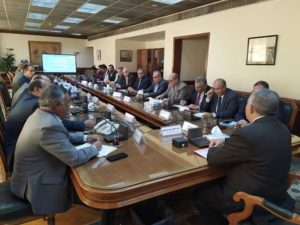 عقدت اللجنة الدائمة لتنظيم إيراد نهر النيل وإدارة المياه اجتماعها الدوري برئاسة الدكتور/ محمد عبد العاطي، وزير الموارد المائية والري، وبحضور القيادات التنفيذية بالوزارة والمركز القومي لبحوث المياه التابع للوزارة وذلك لمتابعة الموقف المائى وتحديد الاحتياجات المائية للموسم الشتوي وما تطلبه ذلك من تنفيذ آليات إدارة وتوزيع المياه بحيث تفي بأغراض الاستخدامات المختلفة، وايضا الاجراءات المتبعة للتعامل مع موسم السيول والاستعداد له وكذلك الإجراءات المطلوبة للتعامل مع الموارد المائية والاستفادة منها بالشكل الامثل .