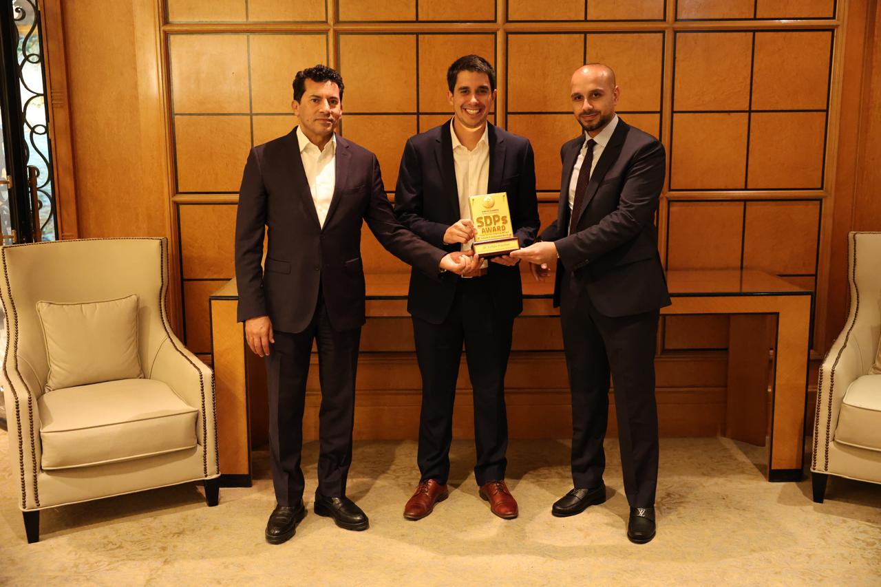 في ختام الأمسية، قام الدكتور محمد زيادة بتسليم جائزة حماة الأرض لرواد الاستدامة (SDPs) إلى الدكتور فيليبي بولييه، تقديرًا لجهوده في دعم الشباب والتنمية المستدامة. هذه الجائزة، التي أطلقتها مؤسسة حماة الأرض؛ تكريمًا للشخصيات الاستثنائية صاحبة الانجازات المستدامة الفريدة التي تسهم في تحقيق أثر عالمي ملموس نحو عالم أكثر استدامة.