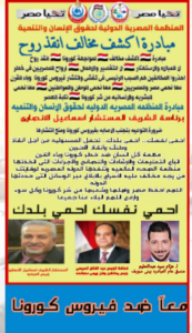 شارك… شارك… شارك… كن معنا لدحر وقهر فيروس كورونا… الى كل مواطن مصرى… اخ.. وصديق… وجار… الى كل اب والى كل ام… الى كل ابن… روحك امانه…. الزم بيتك… احمى نفسك واحمى غيرك.. كلنا فى تحدى ضد فيروس كورونا…كن ايجابى… لانقاذ الانسانيه من وباء القرن… فيروس كورونا… البشريه تنتصر بالتعاون والحرص والالتزام والخوف على الاخرين…