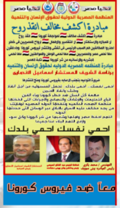 شارك… شارك… شارك… كن معنا لدحر وقهر فيروس كورونا… الى كل مواطن مصرى… اخ.. وصديق… وجار… الى كل اب والى كل ام… الى كل ابن… روحك امانه…. الزم بيتك… احمى نفسك واحمى غيرك.. كلنا فى تحدى ضد فيروس كورونا…كن ايجابى… لانقاذ الانسانيه من وباء القرن… فيروس كورونا… البشريه تنتصر بالتعاون والحرص والالتزام والخوف على الاخرين…