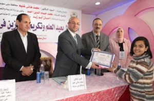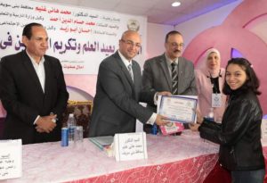 محافظ بني سويف يكرم عددا من الطلاب المتميزين والمدرسين ومديري الإدارات بمناسبة عيد العلم