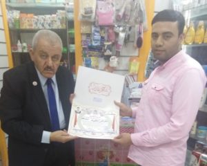 قام المهندس عدلى عوينة نائب رئيس المنظمه بمحافظة الفيوم نيابة عن الشريف المستشار اسماعيل الانصارى رئيس المنظمه بتكريم