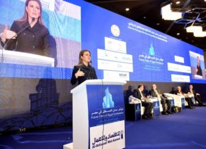 وذكرت الوزيرة، أن الحكومة المصرية في الوقت الحالي تقوم بتنفيذ عدد من المشروعات الاقتصادية الكبرى وفي مقدمتها، مشروع العاصمة الإدارية الجديدة، ومدينة العلمين الجددية وتنمية محور قناة السويس، بالإضافة الى التوسع في المناطق الاستثمارية والمناطق الحرة، وإقامة مدن صناعية متخصصة مثل مدينة الأثاث بدمياط ومدينة الروبيكى لصناعة الجلود، كما أن الحكومة تعمل على جذب استثمارات في المشروعات القومية الكبرى التي تستجيب لاحتياجات المواطنين وتعمل على خلق فرص عمل للشباب والمرأة، مثل مشروعات إنشاء الطرق والكباري، والطاقة والشبكات الكهربائية، وشبكات الصرف الصحي، ومشاريع الاستصلاح الزراعي.