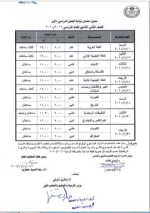 اعتمد الدكتور طارق شوقي وزير التربية والتعليم، جداول امتحانات نهاية الفصل الدراسي الأول للصفين الأول والثاني الثانوي للعام الدراسي 2020/2019.