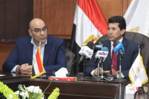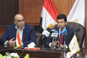 وزير الرياضة يستعرض استعدادات استضافة مصر لكأس العالم لكرة اليد 2021 ويجرى خلال المؤتمر الصحفى اتصالا بالفيديو كونفرانس مع رئيس الاتحاد الدولي
