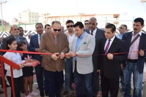 وزير الشباب والرياضة ومحافظ الفيوم يفتتحان أعمال تطوير نادى قارون الرياضي ويضعان حجر أساس إنشاء حمام سباحة وملعب ومجمع اسكواش
