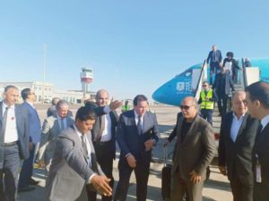رافق سيادته خلال الجولة الطيار وائل النشار رئيس الشركة المصرية للمطارات والطيار صادق الشورى مدير مطار شرم الشيخ الدولى.