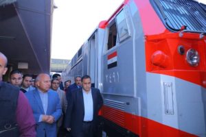 وقبل ان يستقل الوزير قطار 980 المتجه من القاهرة الى المنيا توجه الى جرار القطار وهو أحد الجرارات الجديدة التي وصلت مؤخرا لميناء الاسكندرية ضمن صفقة تصنيع وتوريد 110قطار جديد من جنرال اليكتريك الامريكية حيث أكد وزير النقل على اهمية هذه الصفقة في تدعيم قوة الجر بالسكة الحديد مشيرا الى انها مزودة بأحدث انواع التكنولوجيا الحديثة المستخدمة في هذا المج وفي القطار اطمئن عاى مستوى الخدمة المقدمة وعلى نظافة القطار