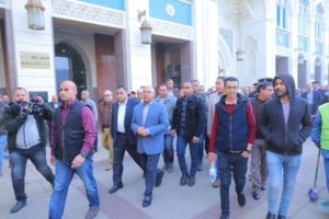 بدأت الجولة بتفقد الساحة الخارجية للمحطة ثم الصالة الرئيسية وأرصفة الوجهين البحري والقبلي وشبابيك التذاكر حيث اطمئن على انتظام جداول التشغيل مشيرا إلى ضرورة اتباع كافة أساليب السلامة والأمان في كافة مراحل التشغيل سواء في عدم خروج أي قطار من الورش إلى بعد التأكد من جاهزيته الفنية و التنسيق الدائم مع شرطة النقل والمواصلات لتأمين سلامة الركاب وبالتواجد الدائم للكمسارية على أبواب المحطات لضمان حصول الراكب على التذاكر وضرورة زيادة عدد الكراسي المتحركة الخاصة بكبار السن لتشكل مع عربات الجولف كار التي يتم تشغيلها بالمحطة خدمة جيدة لكبار السن