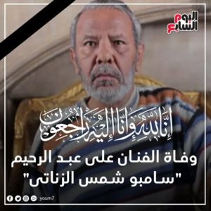 وفاة الفنان على عبد الرحيم “سامبو شمس الزناتى” عن عمر 59 عاما