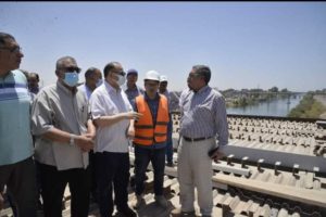 واستمع المحافظ ونائب رئيس مجلس إدارة الشركة لشرح من المهندسين المشرفين على المشروع عن معدلات الإنجاز ونسب التنفيذ في المشروع والتي بلغت 85% والخطوات التي تم تنفيذها من تركيب الكمرات المعدنية واستكمال سطح الكوبرى أعلى ترعة الابراهيمية والقواعد على جانبي الترعة ومتبقي تكلمة الجزء أعلى السكة الحديد لربط الجزء الشرقي بالغربي.