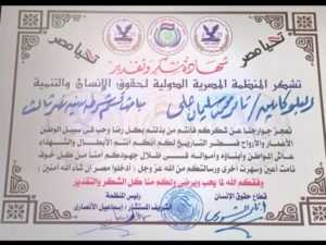 بناء على تعليمات المستشار اسماعيل بيك الانصارى فى دعم مؤسسات الدولة قام اليوم نائبة ( الاستاذ / تامر الشوربجى ) المنظمة المصرية الدولية لحقوق الإنسان والتنمية بتكريم