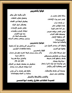 يبدع في كتابة قصيدة جديدة بعنوان فوقوا يامصريين